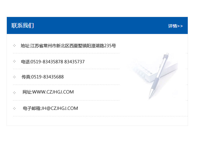 傳真:0519-83435688    郵編:213135    網(wǎng)址:WWW.czjhgj_com.szkaini.com    電子郵箱:JH@czjhgj_com.szkaini.com